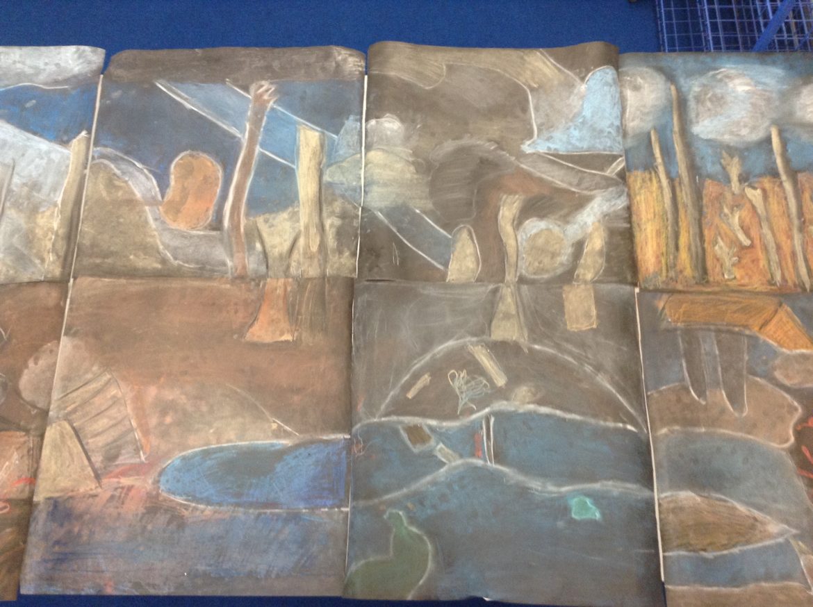 We created our own piece of artwork based on the work of Paul Nash. We had to think carefully about scale and proportion to enlarge the artwork correctly.