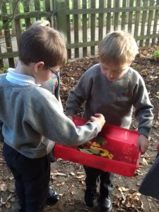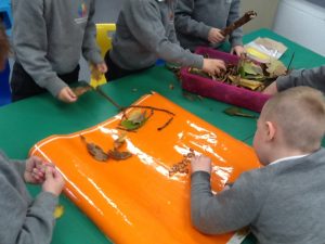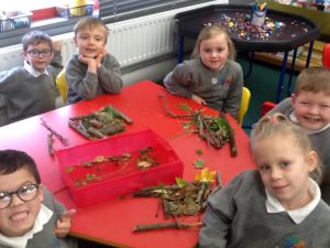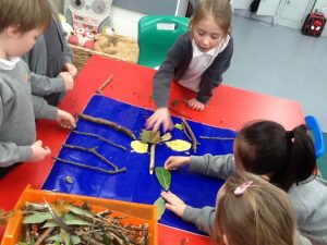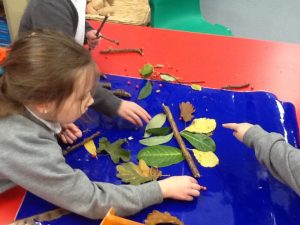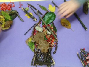We went outside and in small groups, collected many different natural materials. We then used these materials to create our own masterpieces!