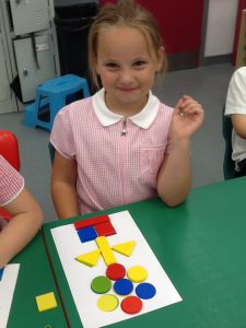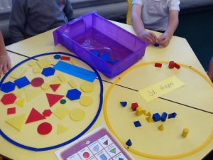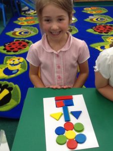 We created patterns using 2d shapes, sorted shapes by their properties and identified shapes within the environment.