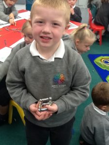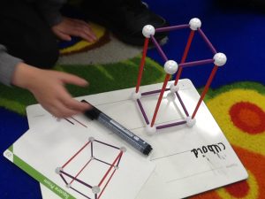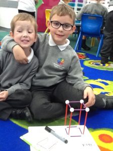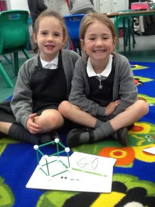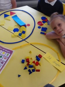 We then explored 3d shapes. We sorted everyday objects into 3d shapes, created 3d models and identified properties of 3d shapes.