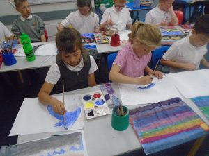 We have been studying the artwork of Jave Yoshimoto. We have evaluated some of his art work and tried to recreate some of his techniques. We have thought about how to mix paints to give us a variety of tones to create different emotions. We have also experimented with our paintbrush and different brushstrokes to create different textures. When painting our own pieces, we have thought carefully about what to include in the background, middle ground and foreground and thought carefully about proportion.